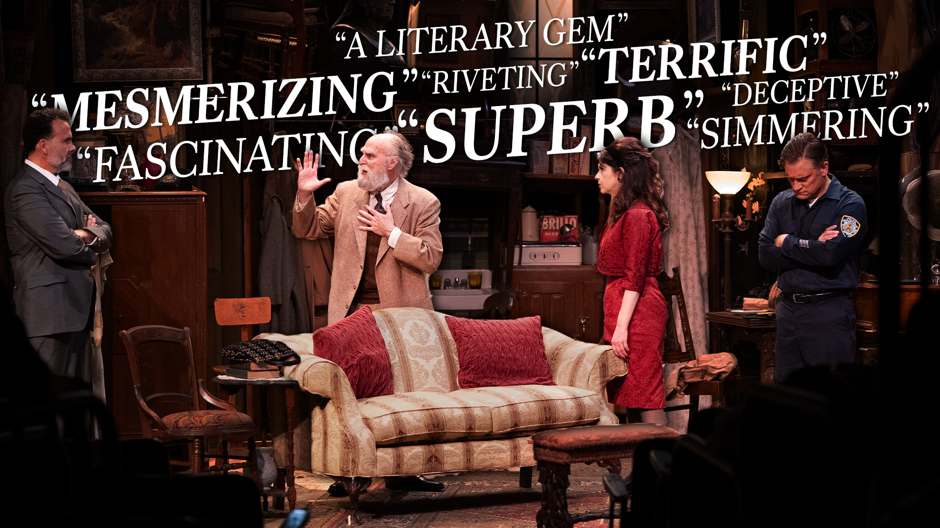 “Each of the talented actors in this drama has taken full control of his character and made it his own… BRILLIANTLY HELMED by Elina de Santos… A review of The Price would not be complete without a nod to Rich Rose’s SUPERB SCENIC DESIGN.” SPLASHMAGS